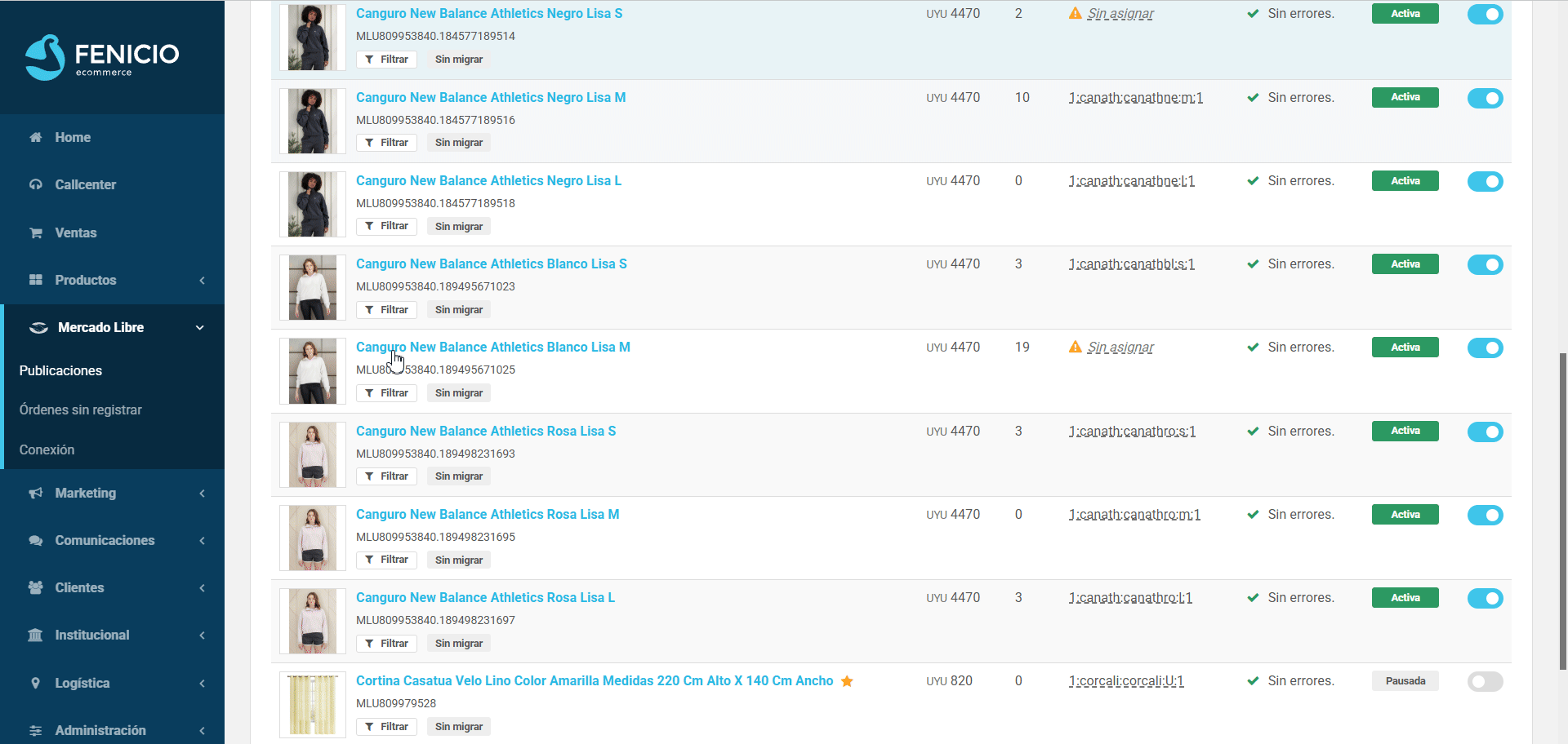 Para que una publicación de Mercado Libre se sincronice con el catálogo de Fenicio, es necesario asociarle el SKU correspondiente del producto en Fenicio.