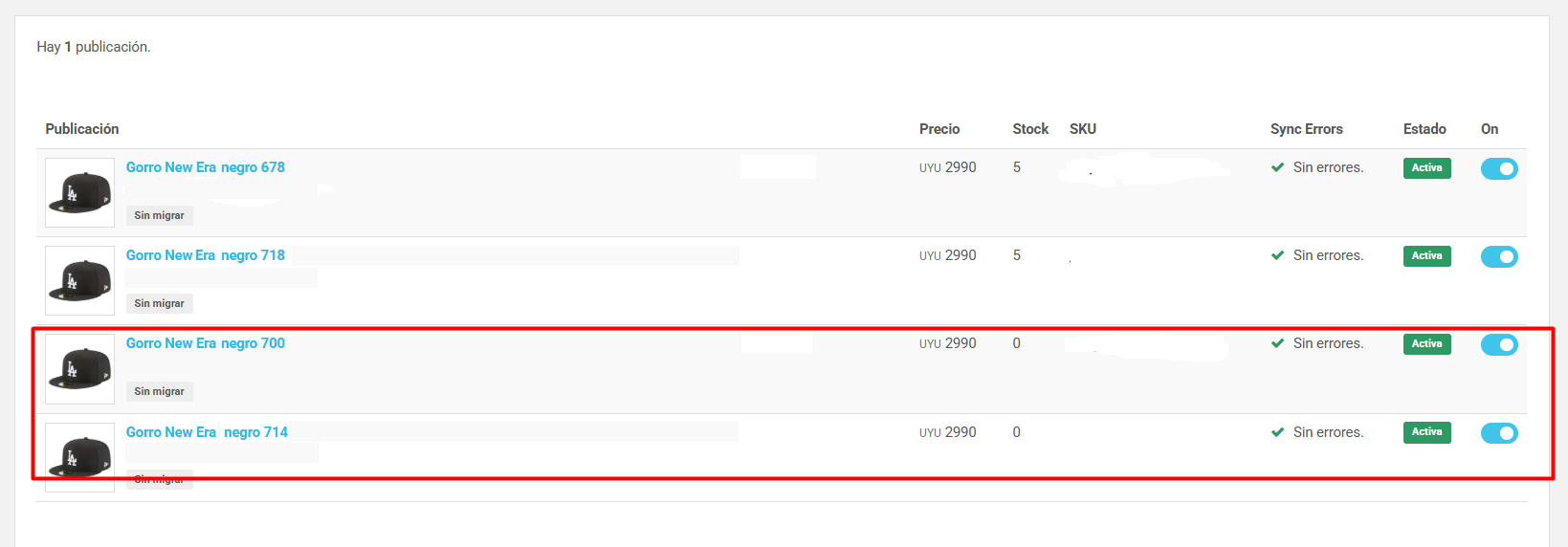 * Publicaciones sin SKU asignado