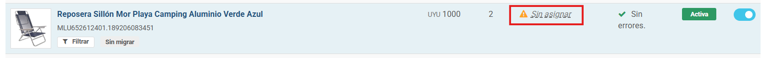 1. En una publicación sin stock ni SKU, hacer clic en “Sin asignar”.