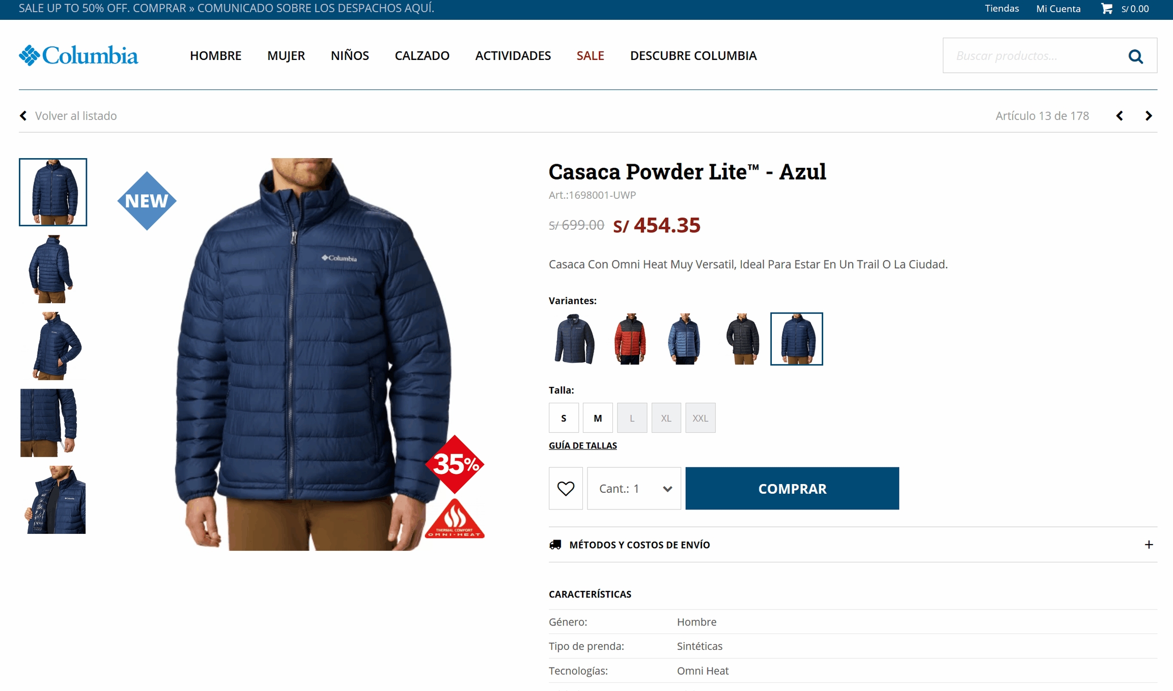 La información de la guía de talles consta de un campo de texto enriquecido, que permite la inserción de imágenes y tablas.