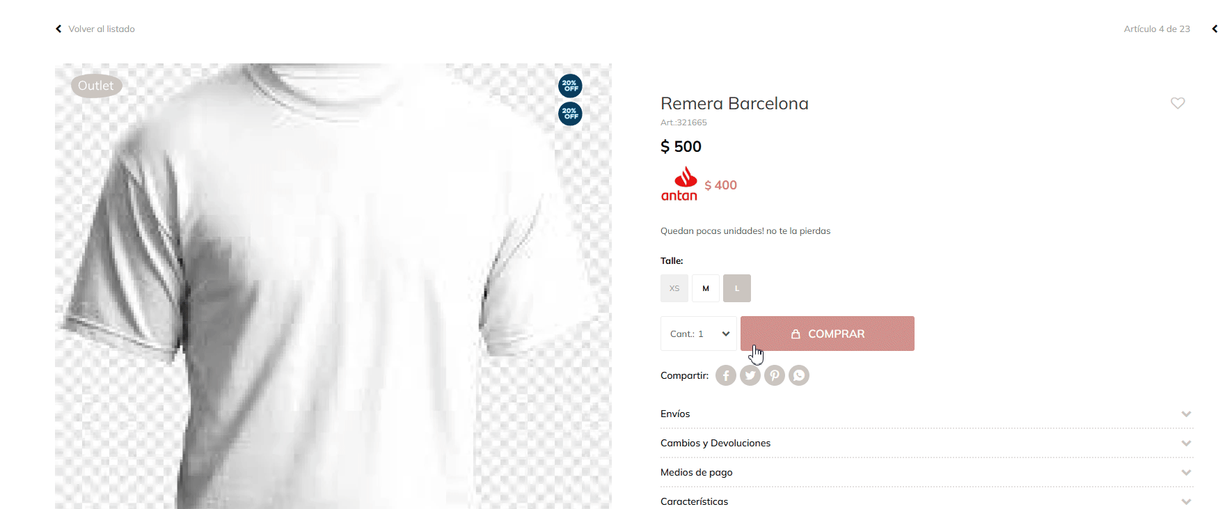 Fenicio permite generar reglas para definición de productos complementarios para venta cruzada o *cross selling*. Se trata de artículos que sirven para completar un look y/o complementar un producto.